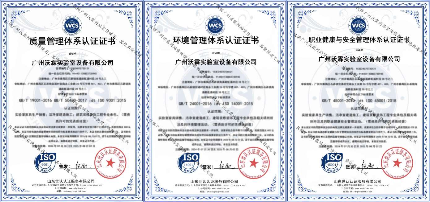 沃霖实验室是洁净行业优秀施工建造企业,拥有建筑装修工程专业承包二级、电子与智能化工程专业承包二级、环保工程专业承包二级、建筑机电安装工程专业承包二级等资质。先后通过ISO9001:2015、ISO14001:2015、ISO45001:2018 认证,知识产权管理体系认证,拥有多项发明专利、二十余项实用型专利及十余项软件著作专利。